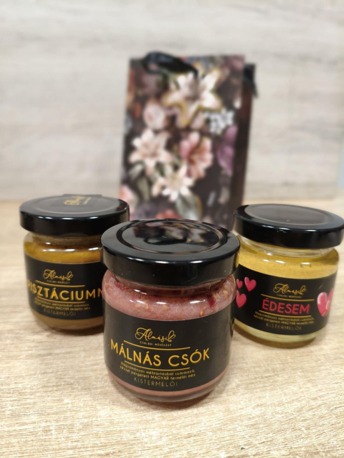 A csomag tartalma: 130 g Epres Álom, 130 g Ámorakác, 130 g Akácméz.